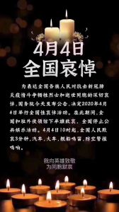 為表達全國各族人民對抗擊新冠肺炎疫情斗爭犧牲烈士和逝世同胞的深切哀悼,國務院發布公告,決定2020年4月4日舉行全國性哀悼活動。在此期間,全國和駐外使領館下半旗致哀, -